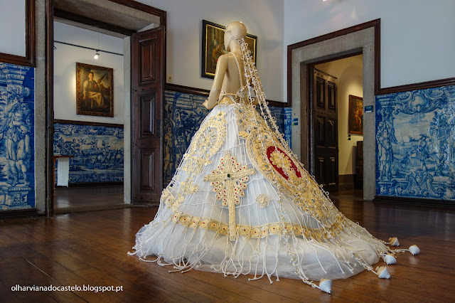 Inspirado no traje de noiva de Viana do Castelo, tem mais de 70 mil cristais Swarovski, tem o típico coração de Viana bordado à mão e levou 900 horas a fazer. Está avaliado em 38 mil euros.